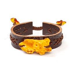Браслет "Дичка" из Янтаря на кожаном ремешке