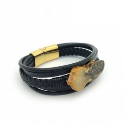 Браслет "Многослойный" из Янтаря на кожаном ремешке