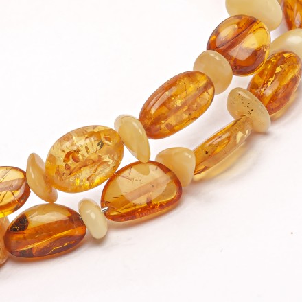 Браслет состоящий из разнообразных, полированных и шлифованных янтарных камушков. Цветовая гамма "микс". Браслет б/р, на струне.