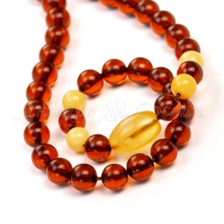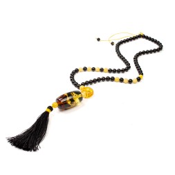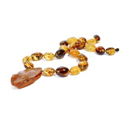 Бусы с кулоном "Слива" из Янтаря с инклюзом