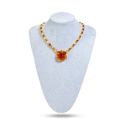 Бусы с кулоном "Цветы" из Янтаря (резьба)