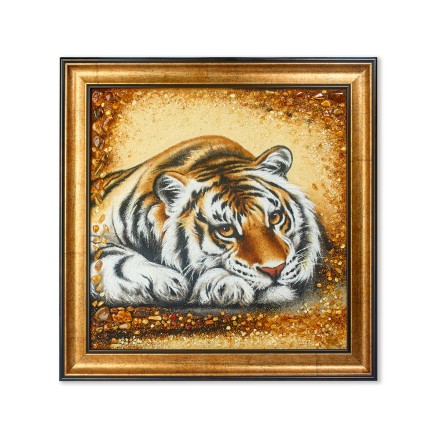 Картина "Тигр" из Янтаря артикул 6539296111 Вы можете заказать в нашем интернет магазине "Янтарь России" с бесплатной доставкой по всей России