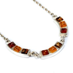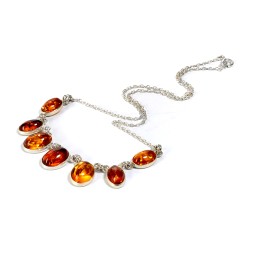 Колье ручной работы из мельхиора с серебряным покрытием. В качестве вставки используется натуральный Калининградский янтарь всевозможных цветов и оттенков