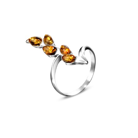 Кольцо "Веточка" Посеребрение с Янтарем артикул 1130033 Вы можете заказать в нашем интернет магазине "Янтарь России" с бесплатной доставкой по всей России
