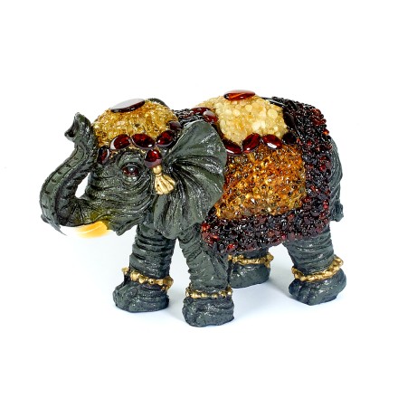 Керамический слон с обсыпкой из натурального калининградского янтаря. Слон олицетворяет добродушие и величие. Образ этого животного на протяжении многовековой истории человечества используется как символ богатства и благополучия. Этот сувенир способен наградить мудростью, необыкновенной силой духа и жизненной энергией. В той же Индии практически в каждом доме встречается изображение или статуэтка этого мудрого и неторопливого животного. (длина 13 см высота 9 см)