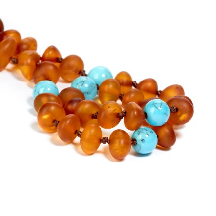 Бусы детские "Мятый шар" из Янтаря с бирюзой артикул 5503010043 Вы можете заказать в нашем интернет магазине "Янтарь России" с бесплатной доставкой по всей России
